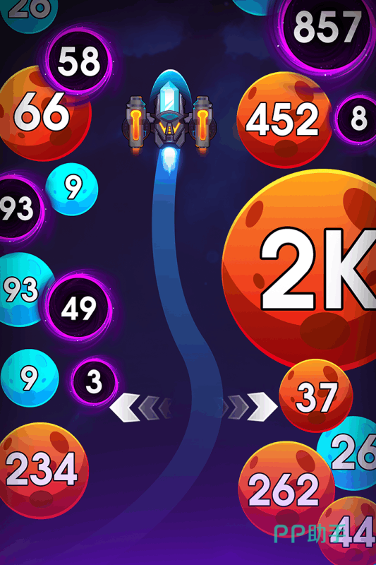 消灭球球是一款考验反应能力的休闲游戏,玩家利用小战斗机发射的球球,来击败前面的障碍物(球球),障碍物上的数量就是玩家所需要发射球球的数量,直到球球显示为0,即可消灭。