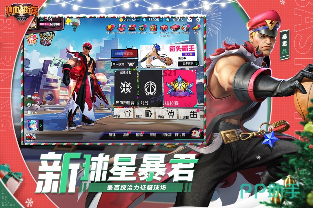 《热血街篮》双旦版本已经重磅上线,趁双旦的party还在继续,大家快来体验纯真的3v3公平竞技吧,让我们的青春在热血的街篮继续。