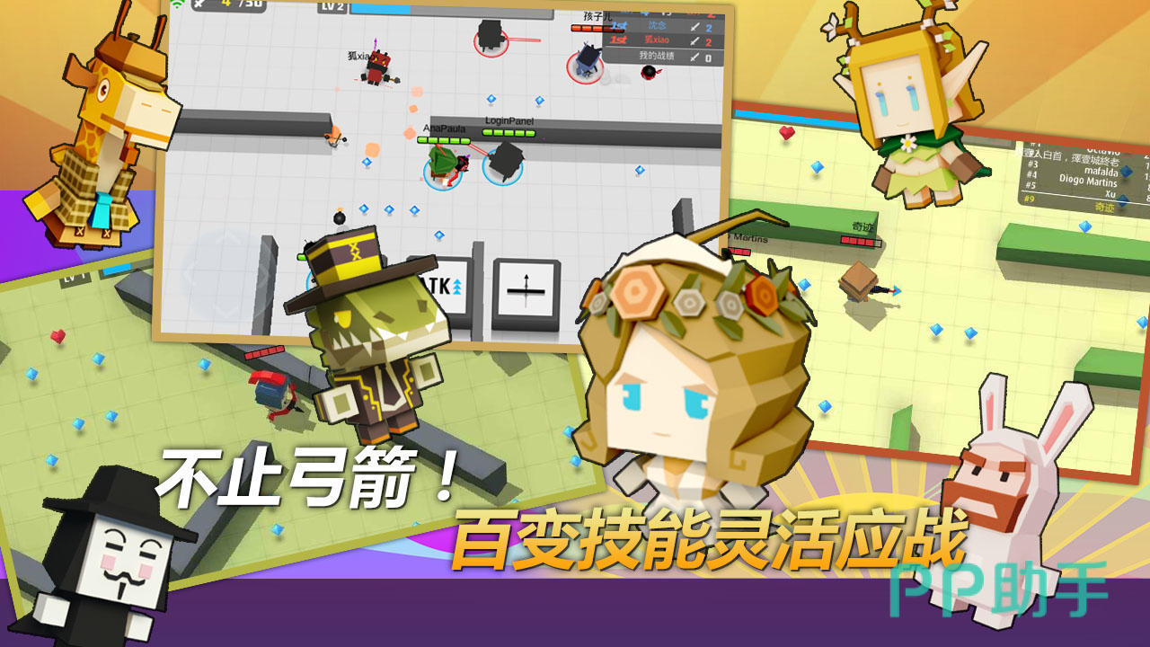这是一款多人在线的射击竞技游戏,拥有各种全新的射击玩法,让玩家在卡通愉快的射击挑战中完成对抗,而且可以解锁各种道具,不仅仅只是弓箭射击效果。