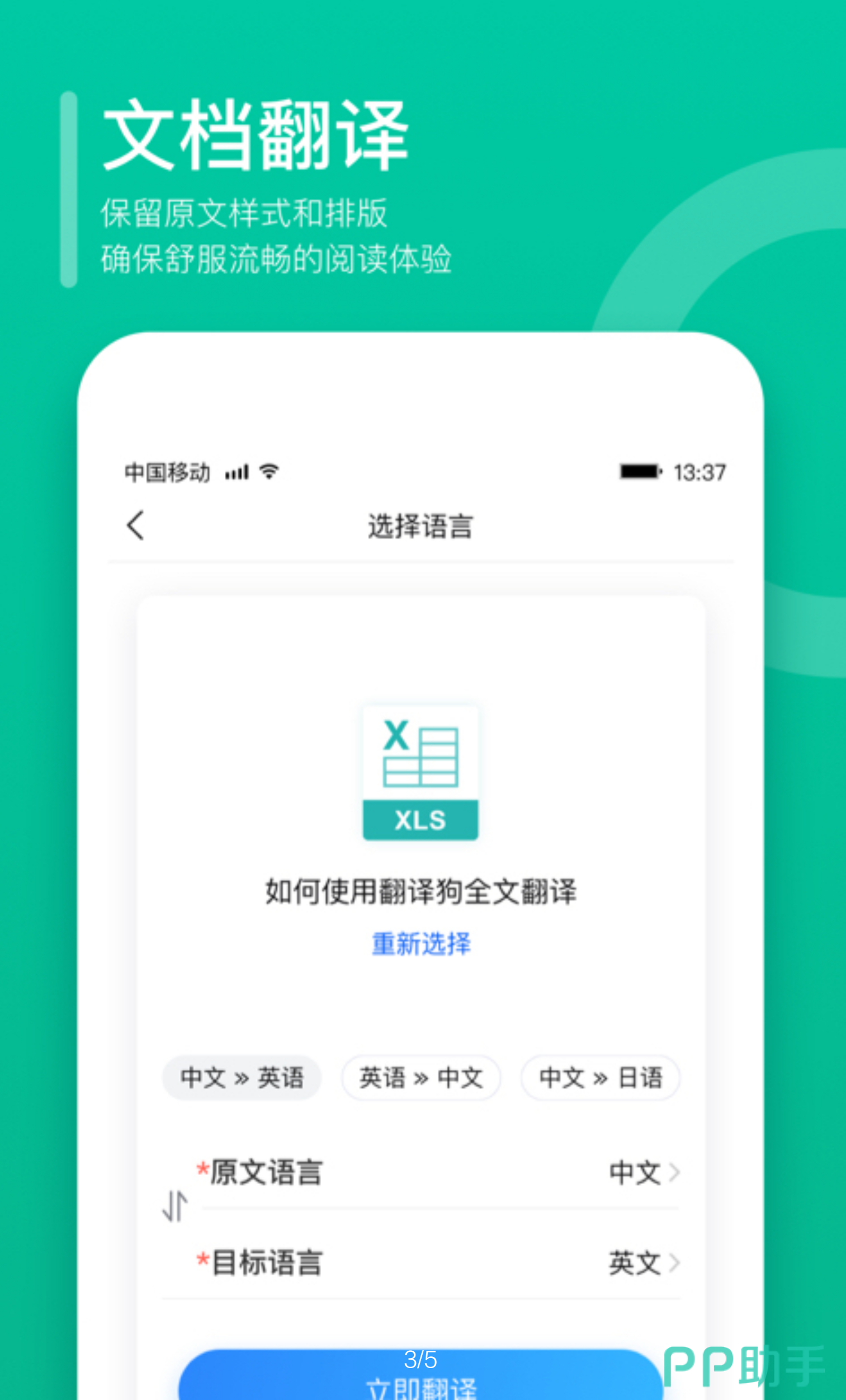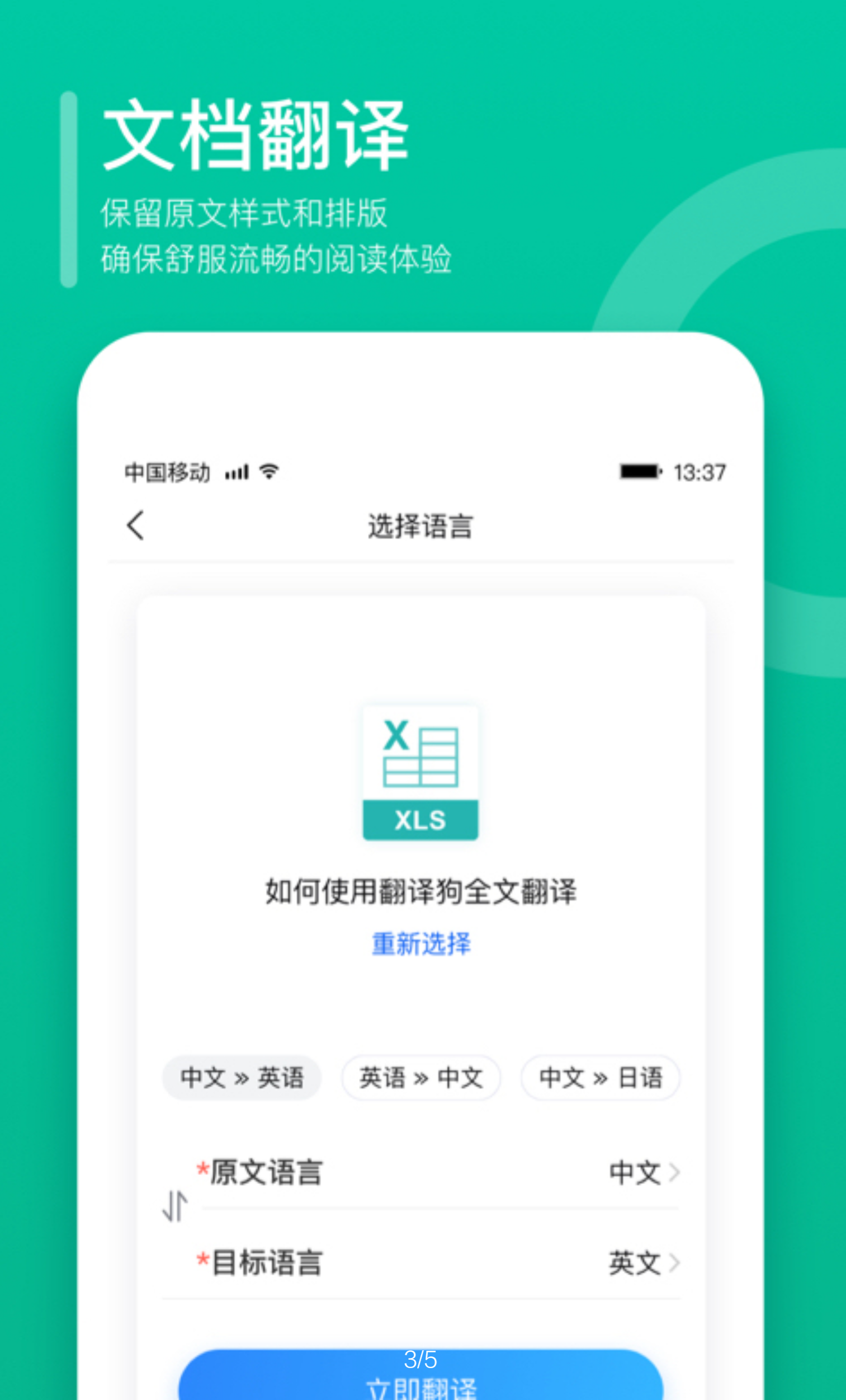 可以人工翻译一较高下的全文档翻译APP,支持Word,Pdf以及简历模板的随传随翻,选择翻译语言,就可以坐等翻译结果,准确率高达百分之九十以上,支持一百二十五种语言。