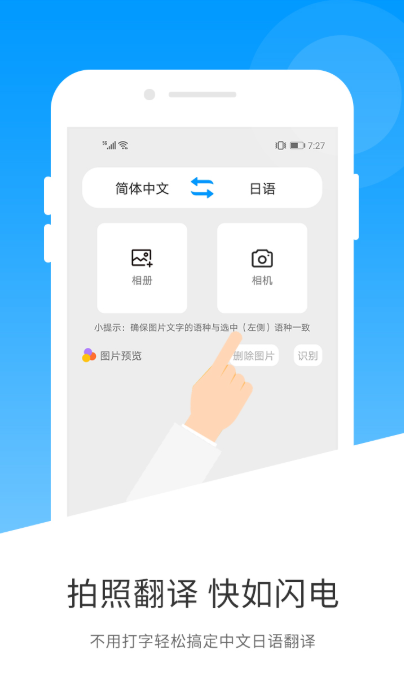 日语翻译是一款拥有拍照翻译功能的软件,用户们可以在软件中打开摄像头对自己想要翻译的文本进行拍照,最后上传到软件中就会立刻生成翻译哦!