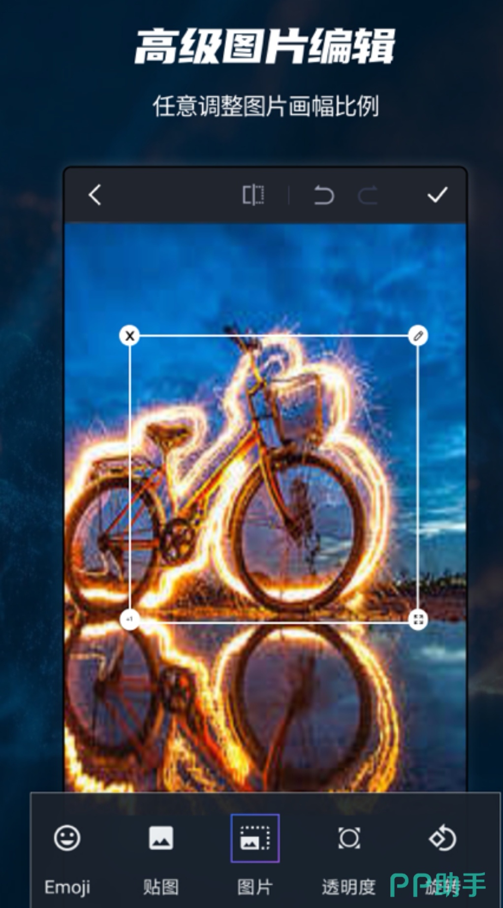 全能的图片编辑器,用户可以随意的裁剪图片,添加各种文字和水印,让图片更加符合心意。图片视频随你拼,你可以充分发挥大脑的创意,套用各种模板进行创造。