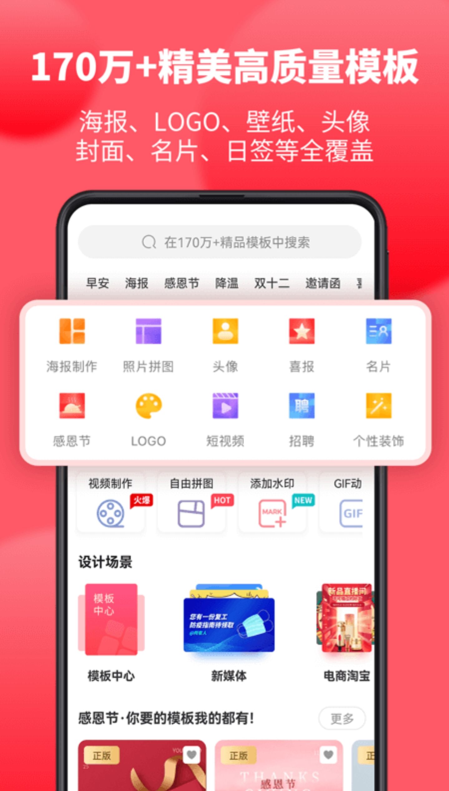 来画设计是一款操作特别简单的只要将文字和图片输入进去,就可以自动生成菜单的应用软件。不仅有着特别简约的可视化模板,让用户们省心省力的一键生成,还有着特别多的应用素材供用户们进行下载。
