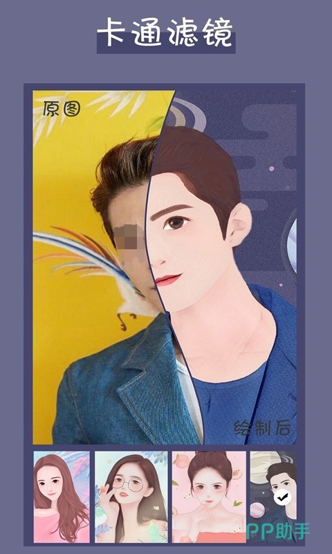 这是一个专门为你绘制动漫画像的app,可对自拍、照片、图片拼图等等进行编辑,它拥有简单流畅的操作体验,还有九宫格切图和完美滤镜等等的其他功能。