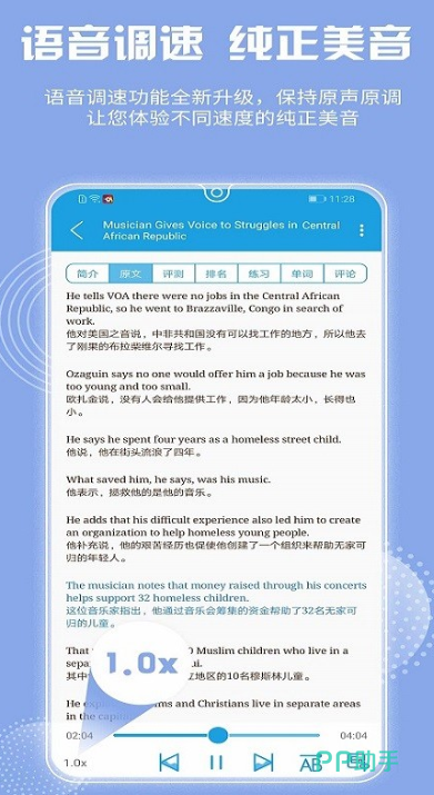 在这里你可以品味到纯正的英语,还有专属的配套练习和口语测评,各种经典的美剧以及优质的资源等你来发掘,还不赶快和小伙伴们一起来体验吧。