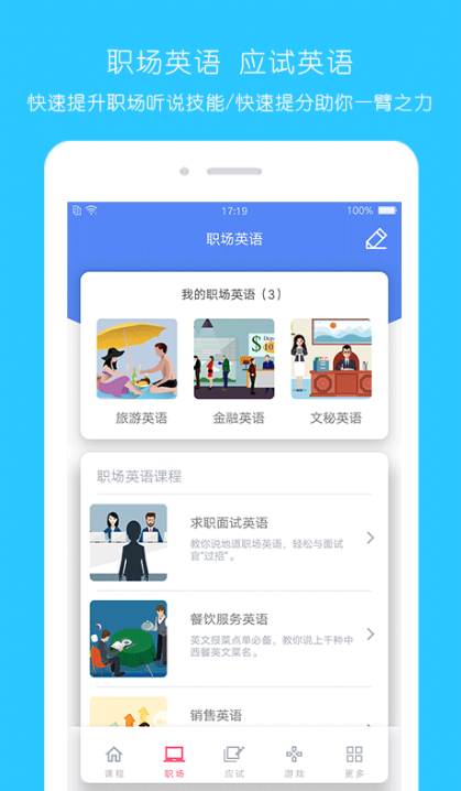 学习英语,可以说是全面性的,在这里你除了能进行基础的学习以外,还有场景式教学,同时也会自主阅读帮助你改善英语发音的问题,加强英语单词的记忆。