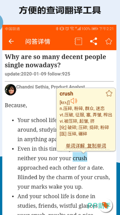 它除了可以让你了解英语以外,还可以加强你的阅读能力,纠正你的发音,了解海外经典名著,掌握各种英语生僻词汇,提高英语的水平。