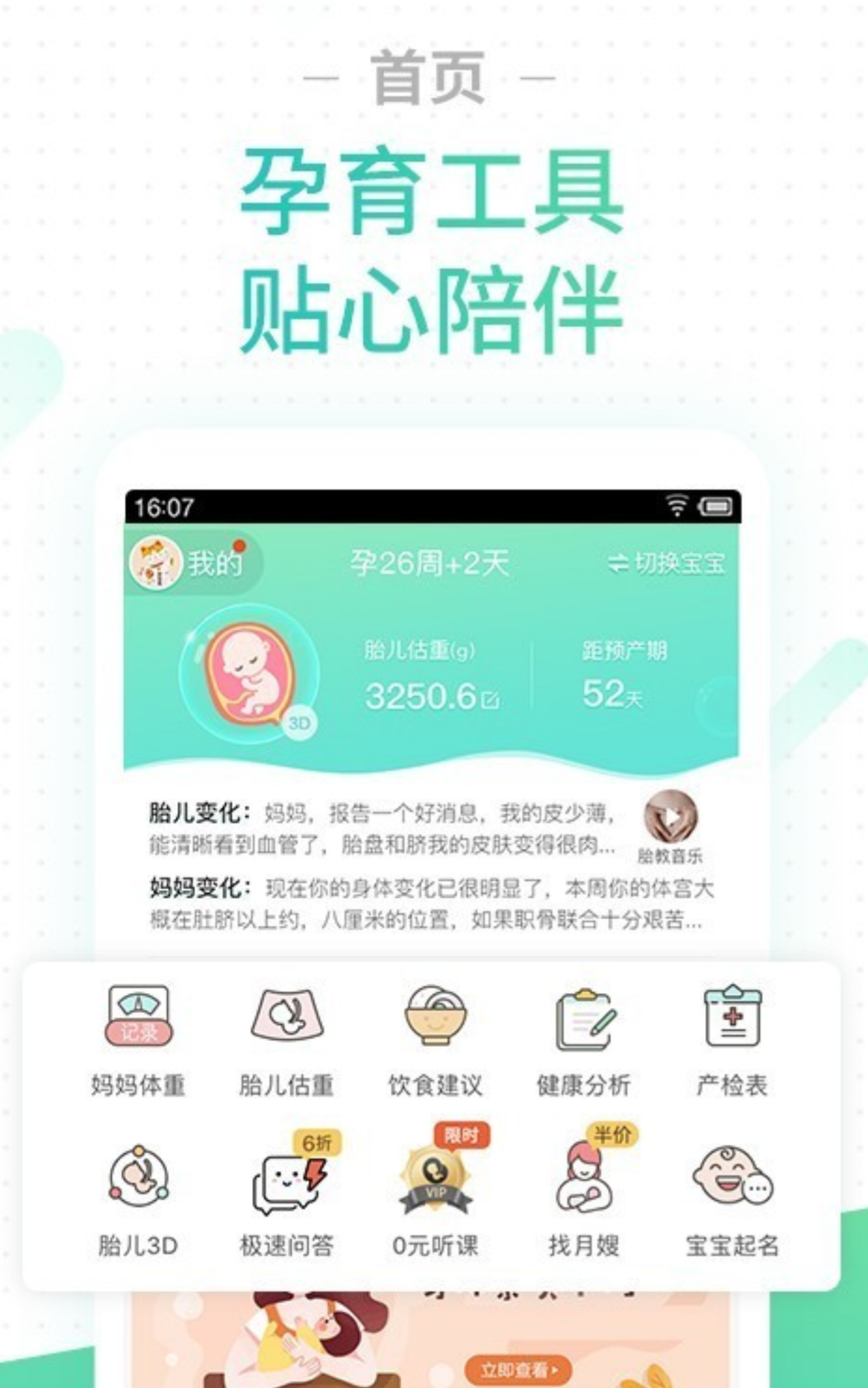 针对孕期怀孕的贴心小工具,专业的备孕、怀孕期小助手,将近百万怀孕妈妈推荐的平台,还有一些贴心科学小建议(能不能吃、能不能做等),这些工具轻松帮助怀孕期妈妈们在怀孕期就做好各种准备。