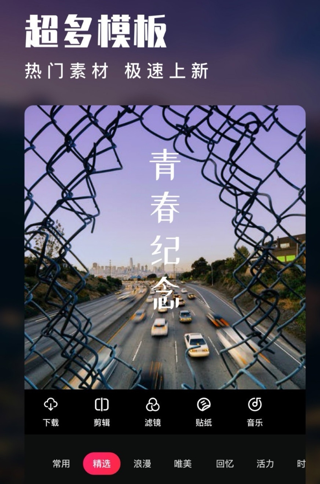 一款专业的剪辑视频软件,帮助你记录下每一天的美好生活。每天都会有全新模板随时上线,用户可以寻找喜欢的并一键套用,制作出来效果极佳的文字视频或者动态视频。
