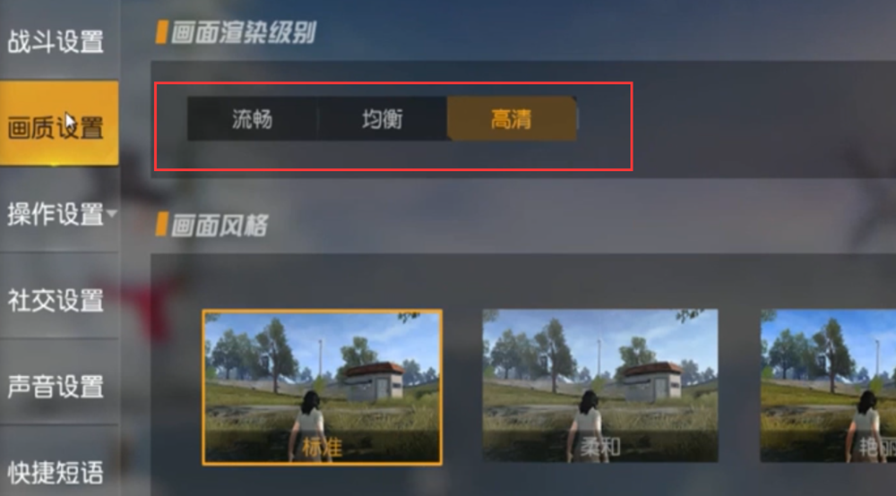 另外画质性能等也不用太高,适度选择调低一些。在游戏设置的画面渲染级别里,有三个级别,分别是“流畅”、“均衡”和“高清”,基本很多小伙伴都会开清高清画面,那自然也就费电了。小编建议选择“均衡”就可以了,画面风格选择标准,不用开特效风格。