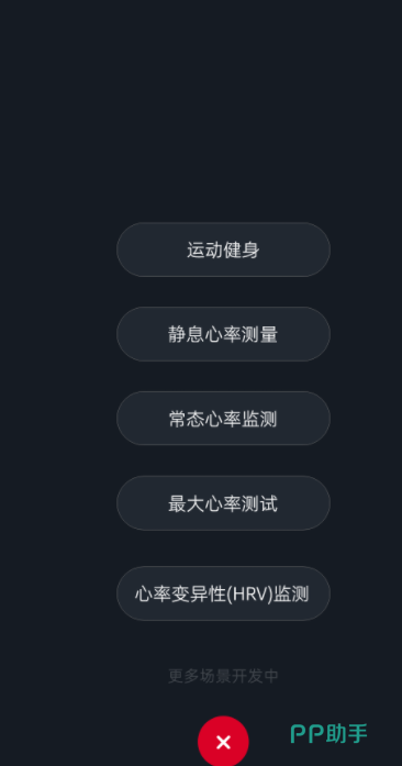 这款心率软件在使用上是有多个选择的, 比如说运动的时候就选择运动的测试,静坐的时候选择静坐测试即可。还有一些挑战最大心率的测试,不过不建议轻易尝试。