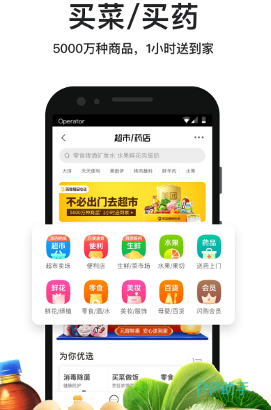 《饿了么》作为一款优质生活的综合服务平台,除了品质美食外、水果生鲜、鲜花蛋糕超和市百货均可以购买,同时团购还有很多优惠哦,新人专属红包等着大家的领取。