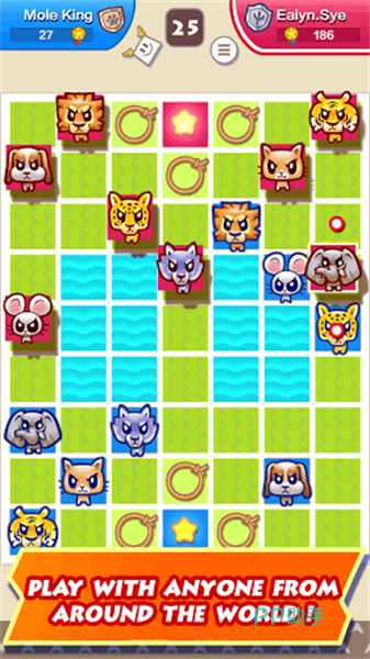 《大头斗兽棋》是一款很萌的卡通棋类游戏,玩法是很常见的斗兽棋模式,而且在原有的斗兽棋规则基础上,还加入了许多解谜的元素,游戏中不仅能单人挑战通关,还能联网与全球玩家对战。