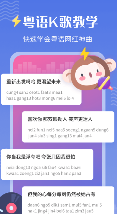 深入了解粤语文化基础,还能听许多经典的热门粤语歌曲,实现一边听歌一边学习,按照每个用户的发音习惯来设定专属课程,让你从此开口就能说得一口流畅粤语。