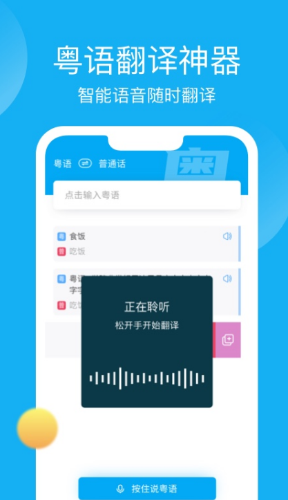 初学者刚接触粤语肯定会非常不习惯,而这款APP就能起到很好地过渡作用,除了互通翻译之外,还能根据自己的语音来转换成为粤语,还会有专业地老师进行配音发声。