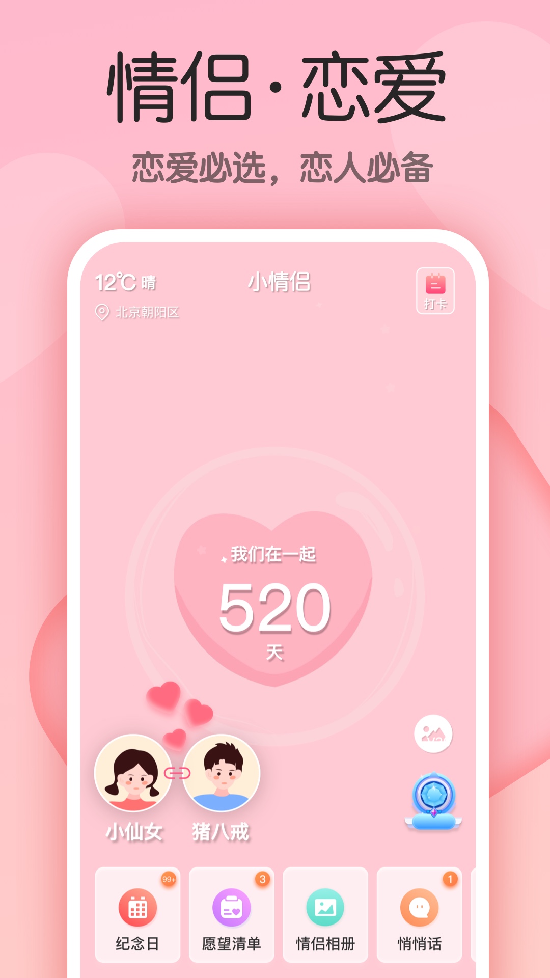 小情侣是一款为情侣打造二人世界的软件,情侣相册情侣社区都适合情侣分享记录恋爱的日常,共享位置能够关怀另一半的出行,悄悄话功能让你大胆表达爱意,拉进两个人的距离。