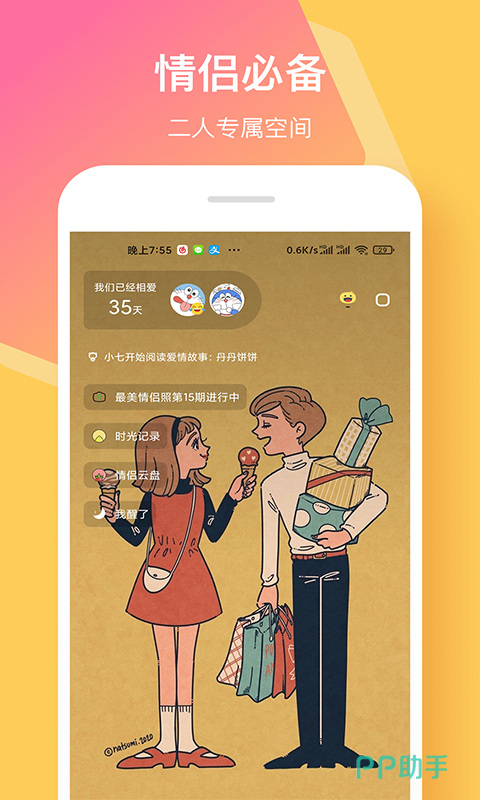 情侣签是一款专为情侣服务的综合性比较强的软件,许多特色功能让情侣爱不释手,即使是异地恋也能让爱情一直保温,一起看电影、恋人清单、情侣条约都是增进感情的小互动。