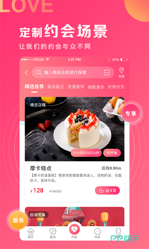 丘比特是一款特别的情侣向软件,时刻记录功能满足情侣需求,丘比特爱情还有为情侣约会定制的服务,浪漫推荐、蛋糕定制让约会更加浪漫贴心,快来丘比特爱情为你们的感情升温吧。
