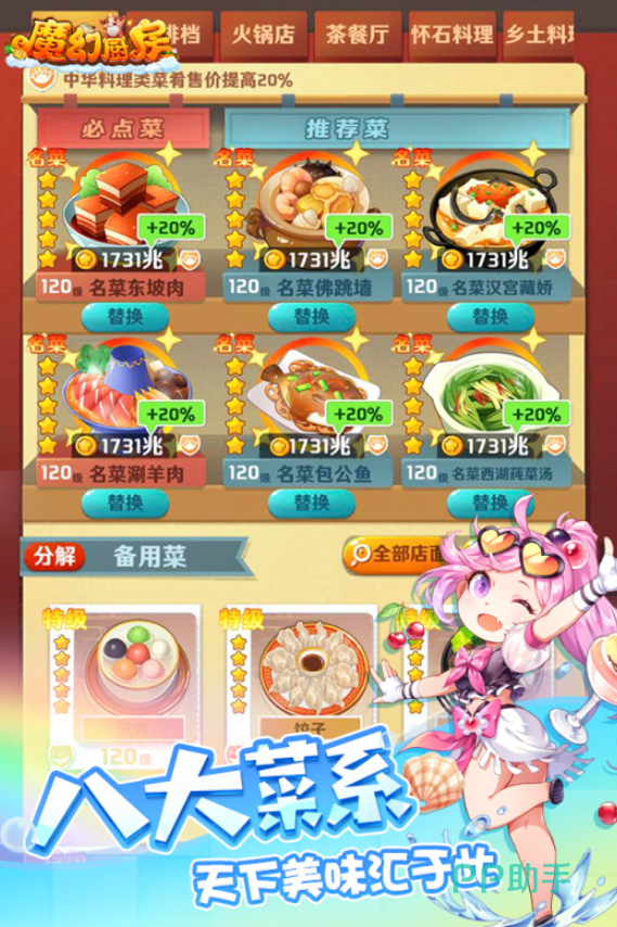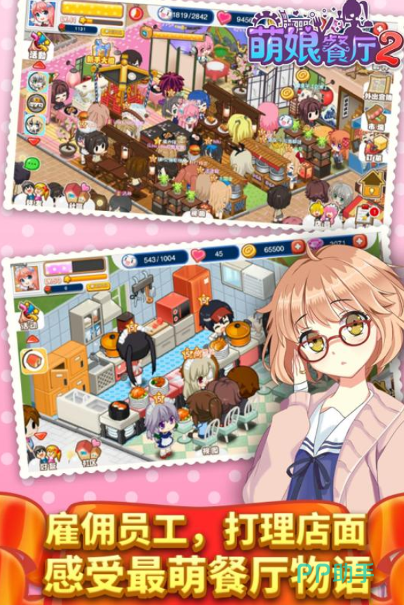 一款将萌元素尽情的融入餐厅中的游戏。游戏中主打模拟经营和养成,玩家可以通过各种小助理来经营你的萌娘餐厅,从烹饪料理、研发、布置小店开始!