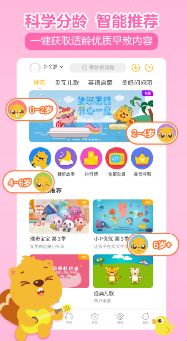 贝瓦儿歌这一款软件的功能非常多,可以听儿歌听故事,在这款软件上面可以科学分龄,智能推荐,一键就获取适龄的优质的早教内容,上面还有海量百听不厌的故事。