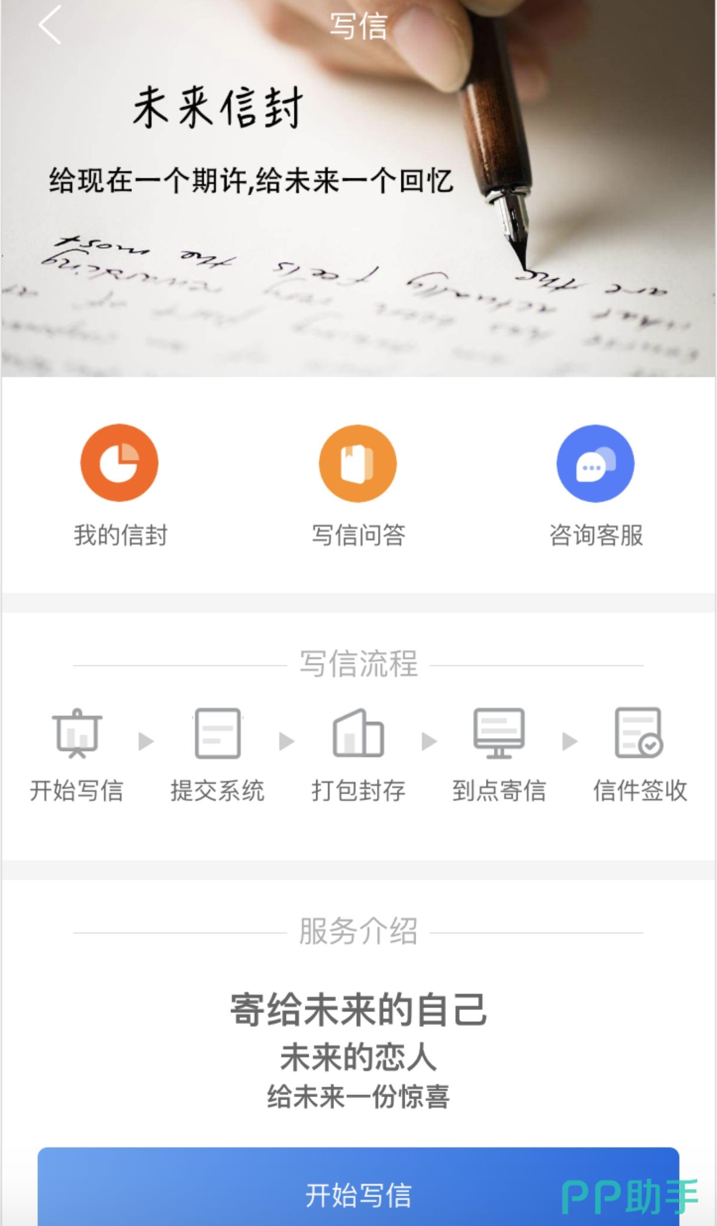 未来信封是一款可以给自己的未来写信的软件,悄悄话和树洞功能也不在话下,总之软件的主要目的就是给用户们提供了一个发泄自己心中烦恼的空间,如果知道其他朋友的账号也可以匿名使用书信交流,结识一个个的笔友。
