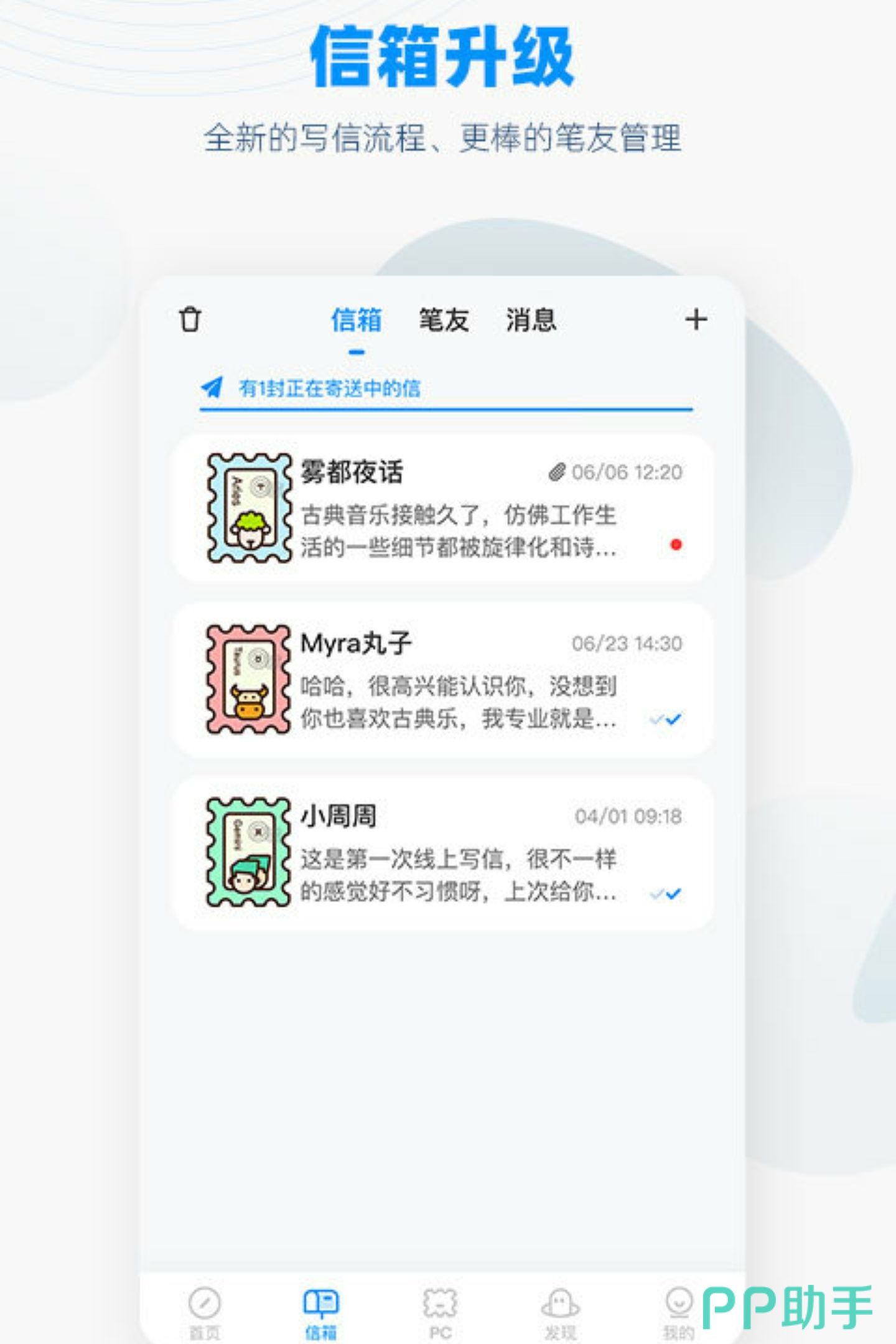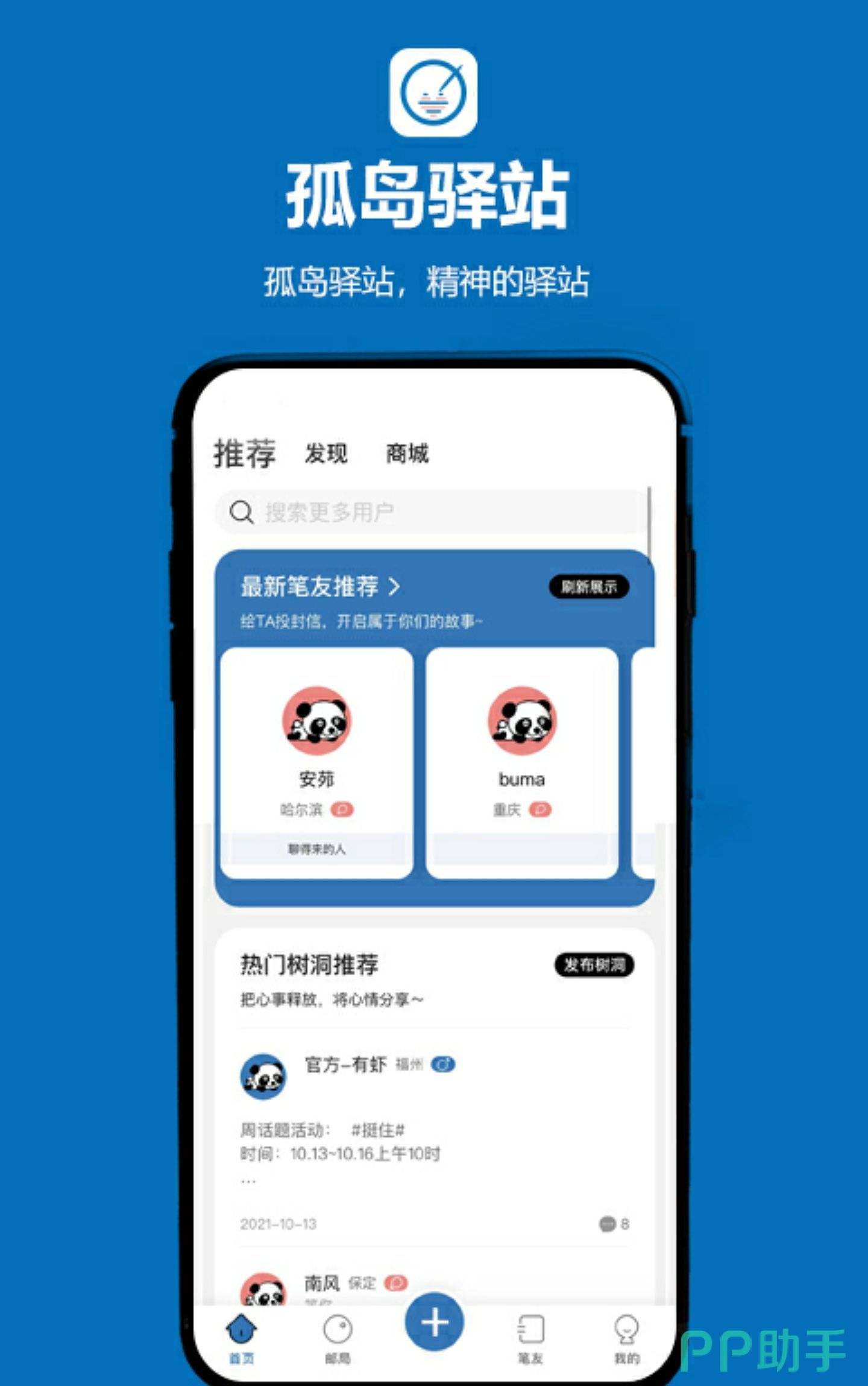 孤岛驿站这款软件大家完全可以当做一个树洞一样倾诉自己的烦恼,在这里面写信不仅可以指定用户,还能通过匿名认识一个个具有相同经历或者是志同道合的笔友,不仅可以锻炼大家对于信件的格式理解,还能让用户们回归慢社交的社会时代。