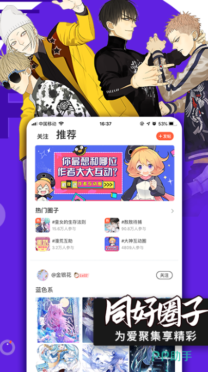 这款软件收录了上万款精品漫画,每一款漫画都有着原版的授权,还打造出了专属漫画迷的讨论圈子,让你结交更多兴趣爱好相同的好友,一起分享自己喜欢的精彩片段。