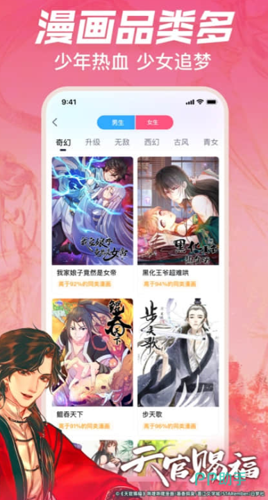 这是一款面向喜欢看漫画用户的app,独家的原创漫画,日更万篇模式,让你从周一看到周末不断更,上千种题材随你挑选,除了国产漫外还有国外的漫画。