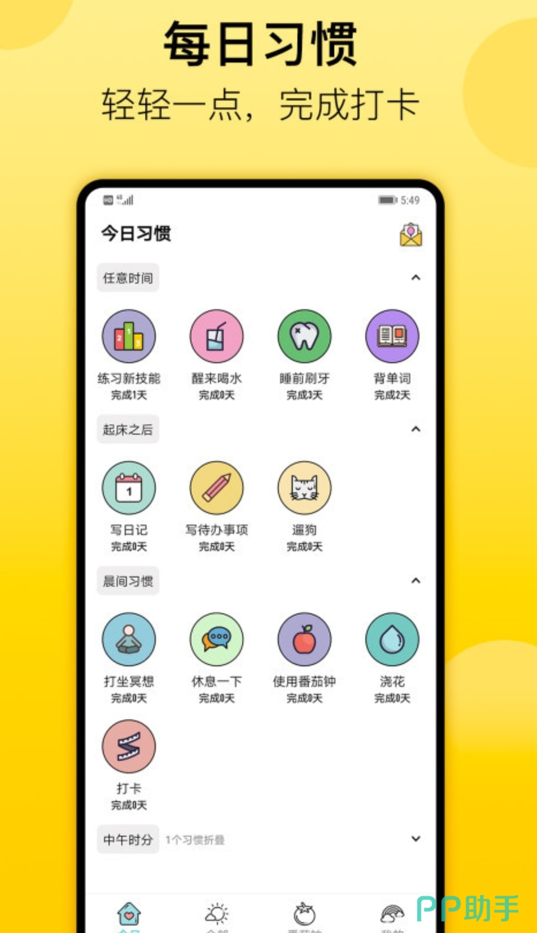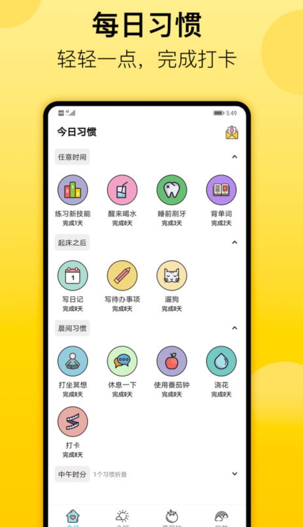帮助用户养成一个自律的习惯,轻轻一点就可以完成每日打卡,让生活变得更加有计划。系统会自动记录下用户每天成长的变化,让你的蜕变记录清晰可见。