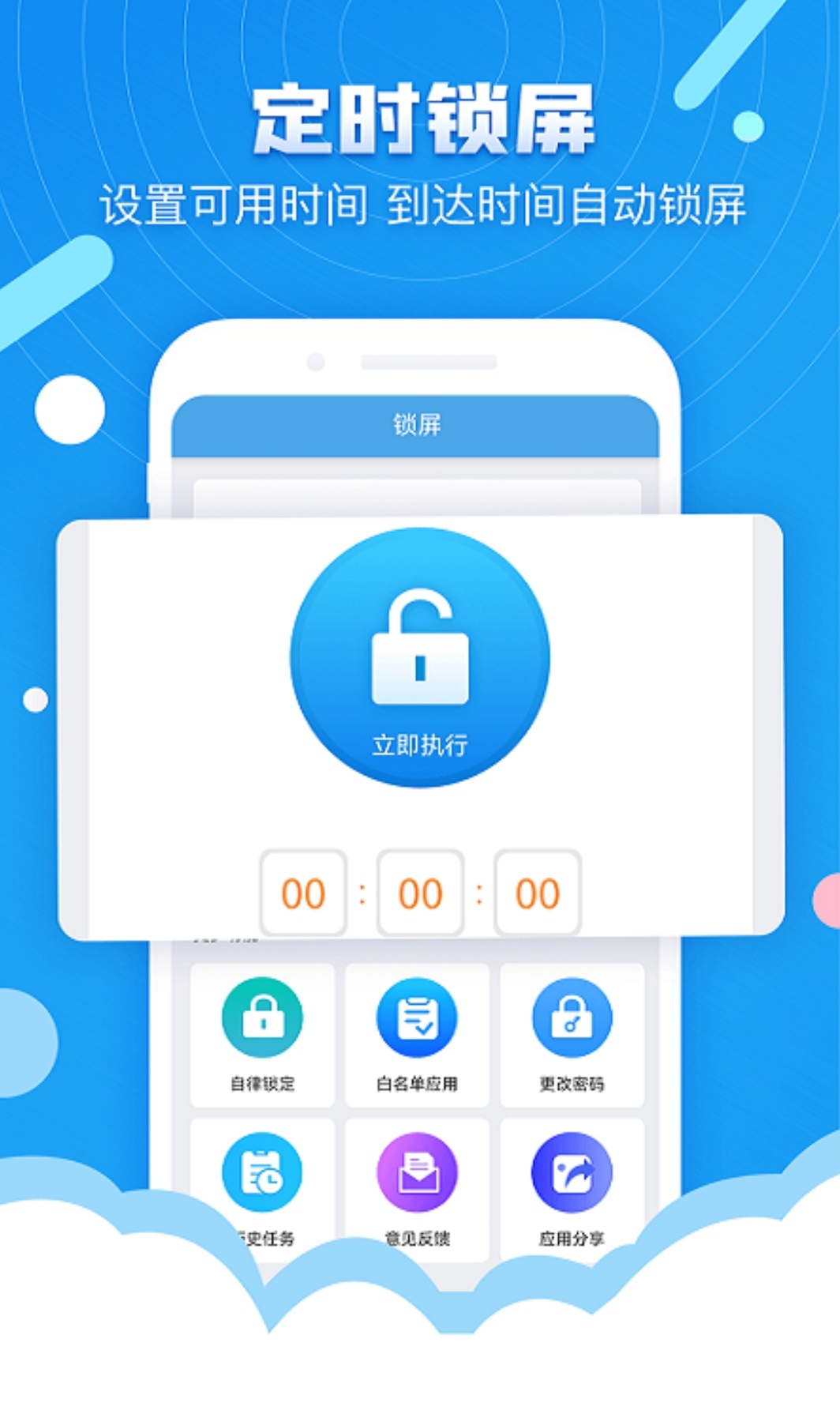 快速锁机,从此告别学渣不自律的生活,成为一个把控时间的学霸,自定设置锁机时长,根据自己的时间来合理安排,定时锁机还能让手机自动上锁。