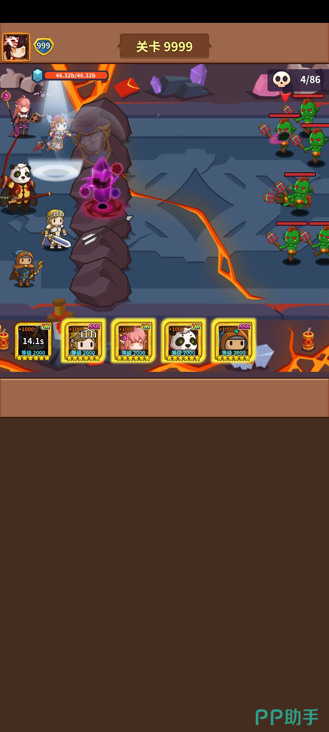 至于其他方面的内容这款游戏也并没有太过深奥的玩法,大家只需要慢慢升级水晶和人物即可,将一关又一关的魔物击败,由于我们在9999关被击败过所以游戏也是打通9999关就通关了。