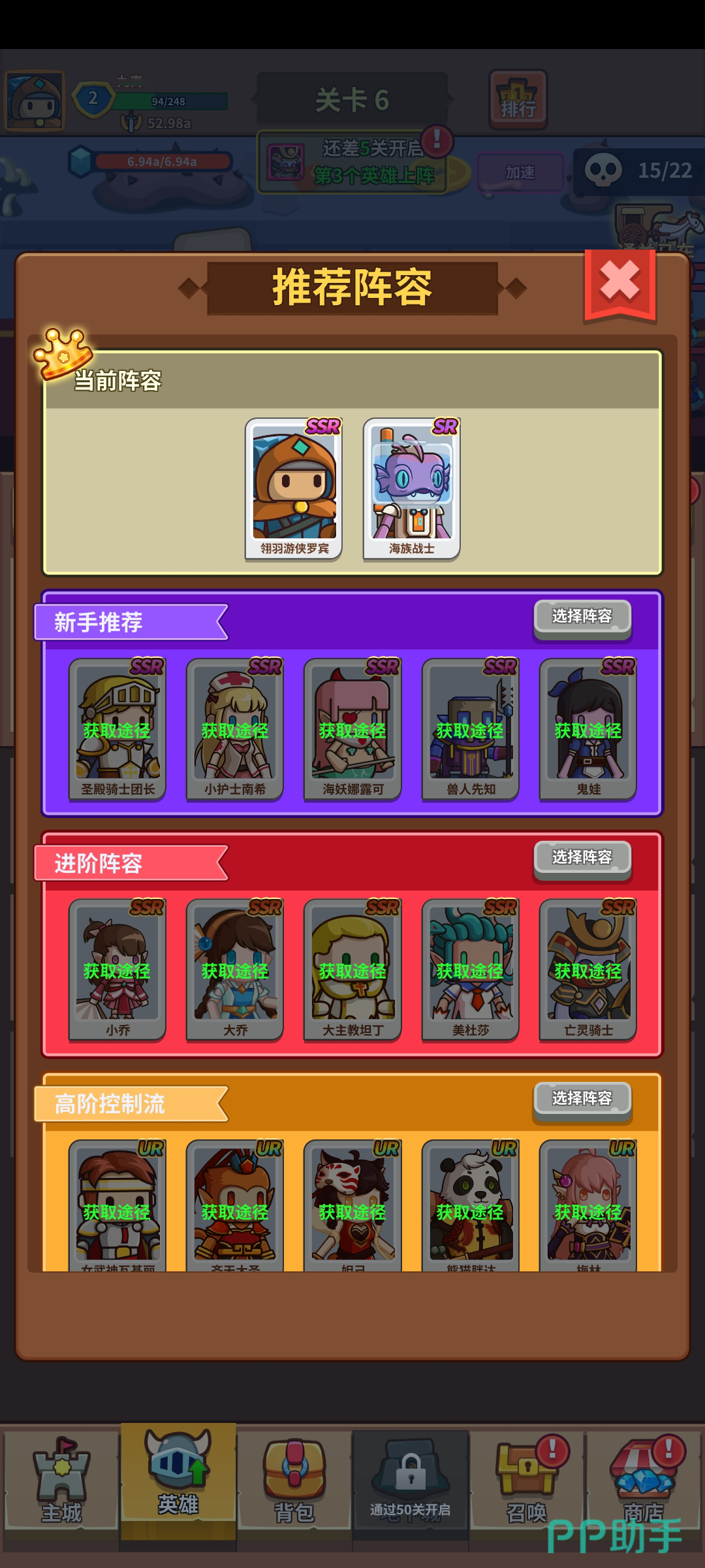 首先这款游戏的前期是很友好的基本上小伙伴们运气好的话可以获得一个UR加四五个SSR级别的人物,虽然不是什么非常厉害的人物但在前期也足够打了。在我们前期的时候是没有过多的位置可以放人物的,小伙伴们将第十关打通之后就可以获得三个空位,这样可以很好的解决前期的攻击力不够的问题,所以优先考虑通关。
