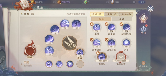 贪狼这个角色拥有游戏中最高的输出能力,其技能多都是带有强大的爆发输出,并且在普攻以及大部分的技能释放阶段都是能够进行位移的,配合上一些带有位移以及多段释放效果的技能,贪狼的机动性也是游戏中最强的。不管是前期的主线流程还是后期在多人副本中刷素材,贪狼都能够轻松胜任。