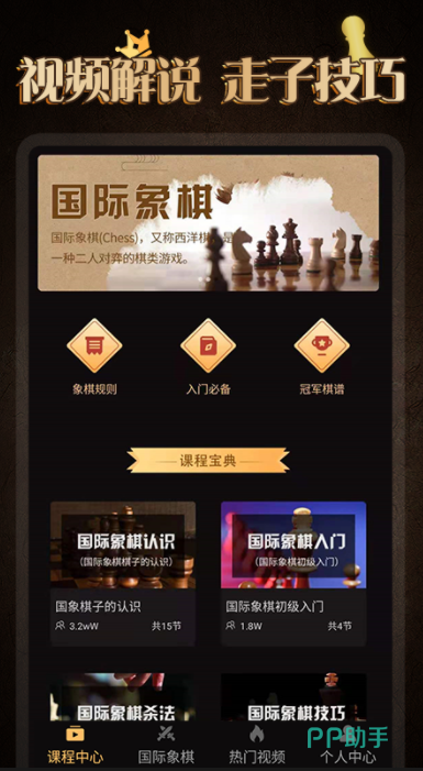 象棋微课堂是一款专门教学国际象棋的app,软件充分体现了因材施教这个理念,针对不同的人群提供多种国际象棋教学模式,让用户的象棋学习更加轻松。