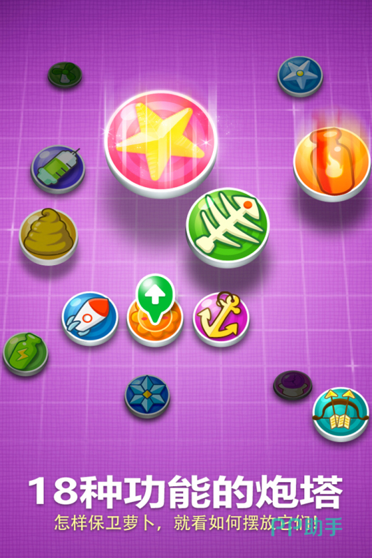 保卫萝卜是一款非常可爱的单机塔防游戏,在这款游戏当中有超过10余种不同的炮塔,还有6种主题超过100张的精美地图,让玩家可以在丛林,沙漠深海等各种区域进行超萌的塔防挑战保卫萝卜。