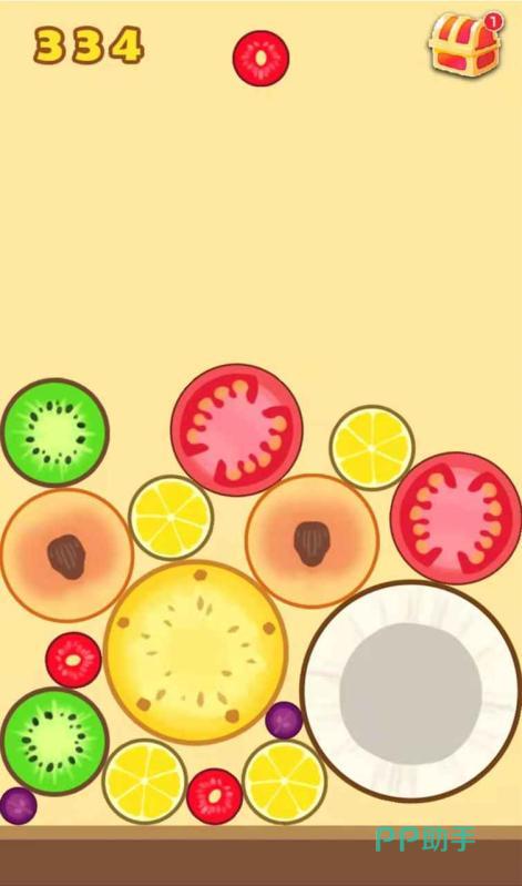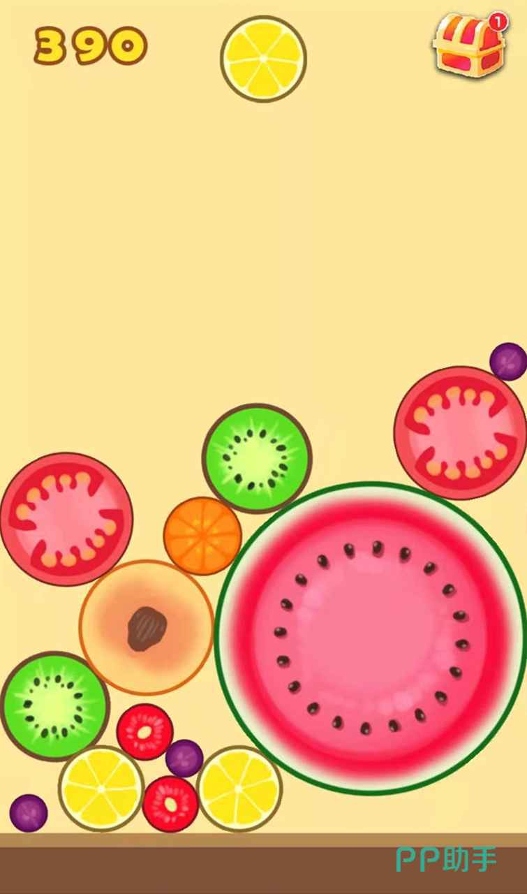 一款好玩的合成类手游,玩家需要把两个体型较小的水果相撞用来合成更大的水果,游戏中圆形水果被设定为可以滚动的,会发生许多不可控的结果。