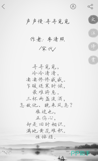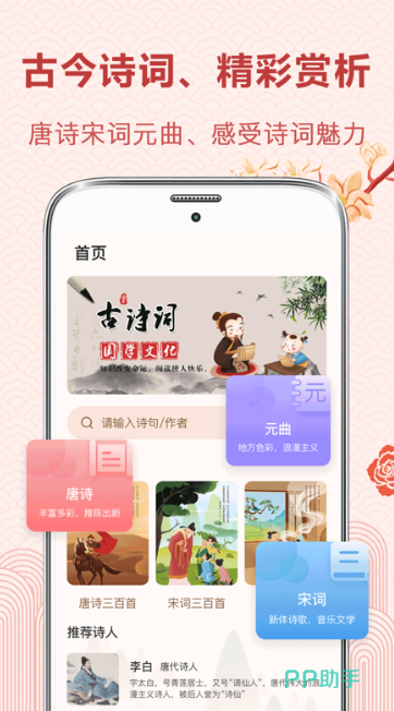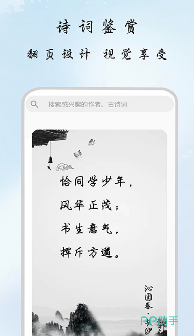 中华唐诗宋词是一款正在学习唐诗、宋词、元曲的朋友使用的古诗词app,通过该软件的分类查询功能,每日轻松完成一首古诗的理解与背诵。