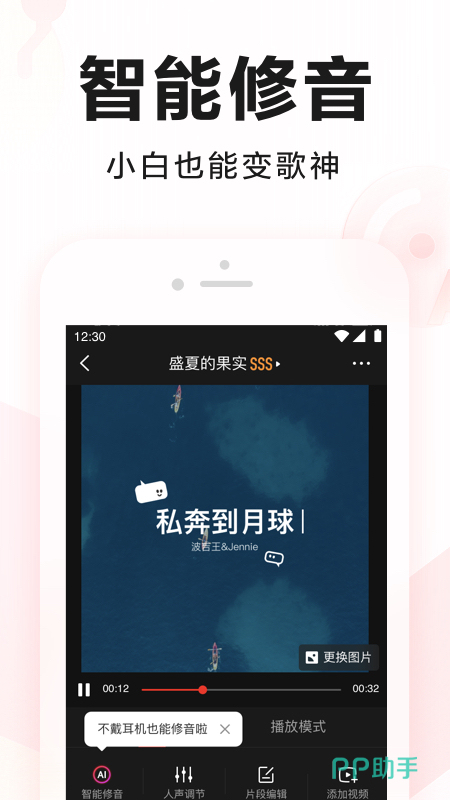 这是一个即兴排K歌短视频的软件,从家里到户外,聚集了每个人的即兴嗨唱,全屏MV视频录制,原唱、伴奏随心选,MV视听效果,歌曲修音等等的强大功能。