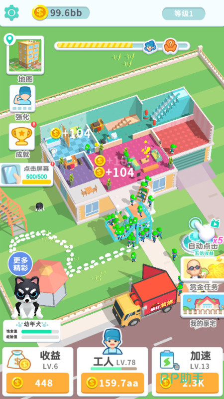 手游属于休闲益智类,在卡通画风下,升级和建造房屋,获得一些成就感,收获很多金币,还打造多种风格房屋。