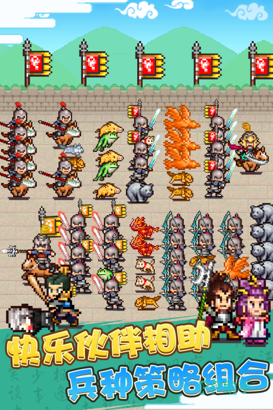 在历史战役中,玩家作为指挥官,操控不占战斗,释放不同技能组合,培养吕布、赵云、司马懿、周瑜等武将,排兵布阵,一统天下。