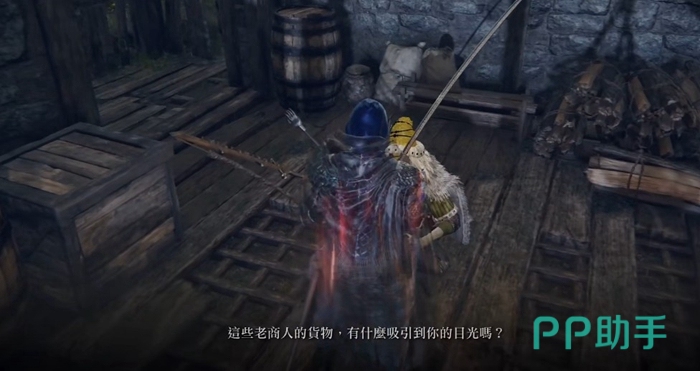 这里我们一直往东北方向走,可以看到一处类似哨塔的建筑,这里有一个爬梯可以爬上去。爬上去之后有一个幽灵战士,继续沿着爬梯往上,击杀第二个幽灵战士之后往西北方向往可以看到石头旁边有一个木质平台,跳下去往西北方向走可以看到一处山洞。进入山洞之后可以发现一个见弃商人,在见弃商人这里可以消耗1000点卢恩购买到流浪战士的制作笔记17了。