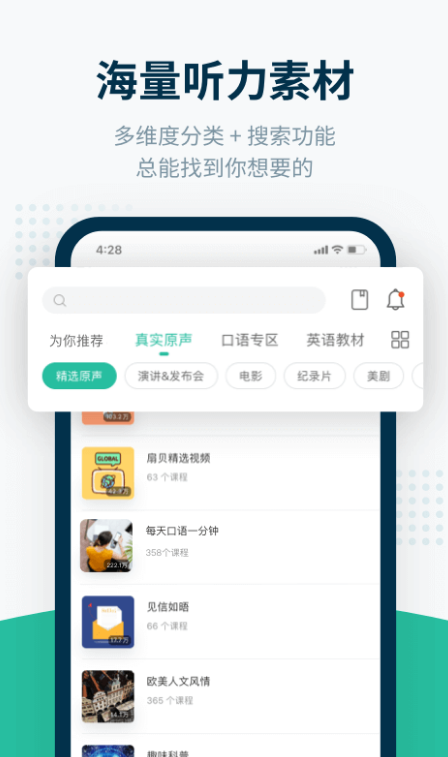 各种英文听力教学免费为用户提供,每日更新的各类学习名著精读将帮助用户提升学校效率。还想要获得更丰富的应用体验,用户们只需要点击下载即可。