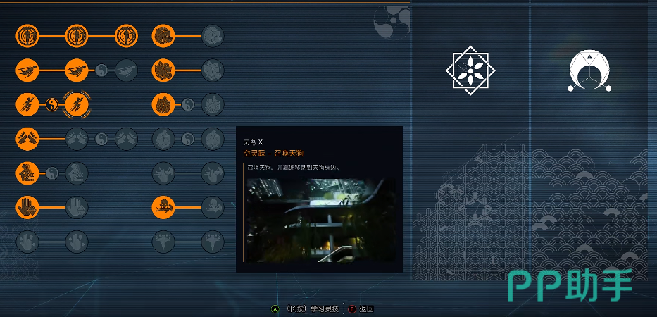 对准之后按键就能飞到天狗处,并且天狗不会直接离开,玩家可以多次重复利用天狗。后期技能点当中还有“召唤”天狗的功能,学会这个技能后就能随时随地进行召唤,帮助玩家跑图和规避敌人伤害。