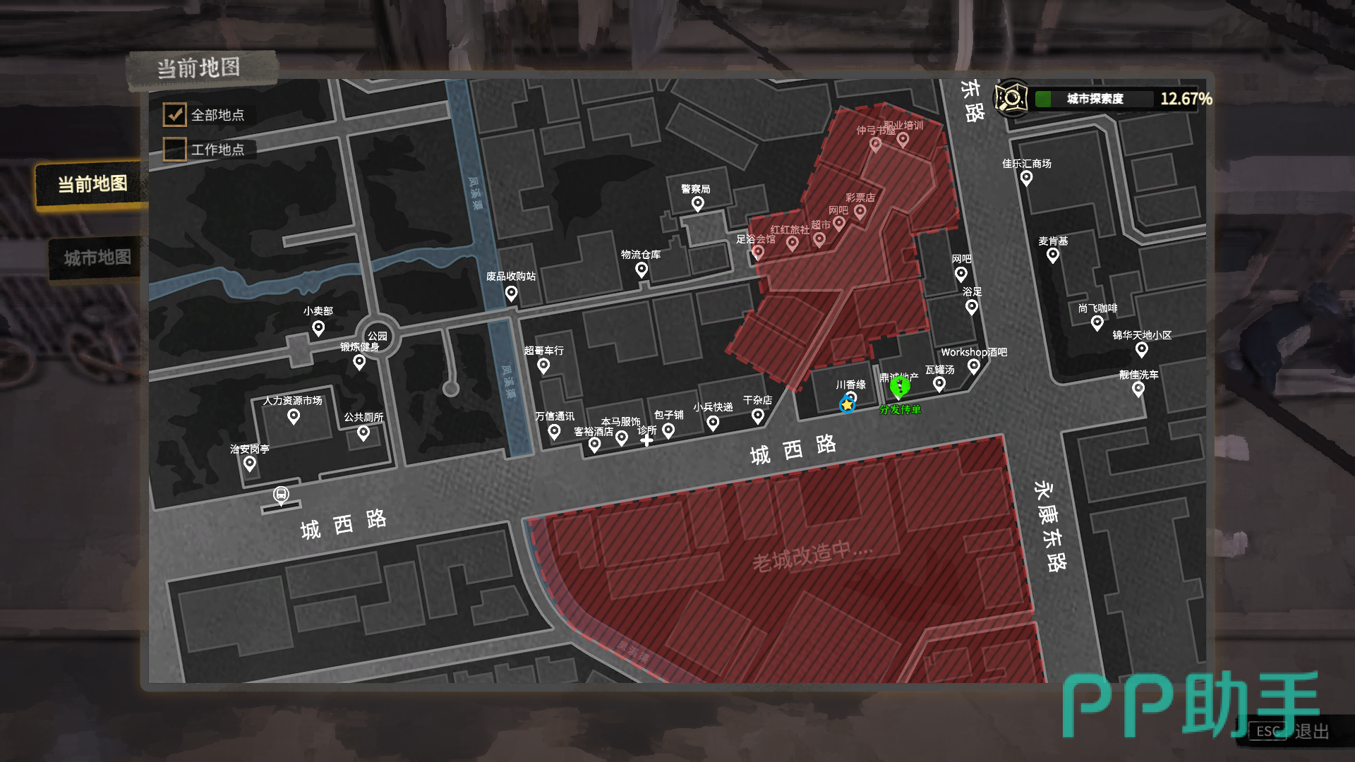 在达到外卖配送的前置条件后,我们来到地图上的这个位置,找到“川香缘”饭店,这里就是外卖配送的工作地点了。