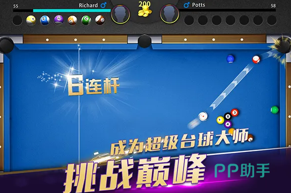 《超级台球大师》是一款模拟现实世界的台球对战游戏,支持传统黑八玩法、斯诺克等多种形式,简单、时尚、酷炫的动作、真实的物理模拟参数、刺激的比赛,让你在线上体验到一场精彩的媲美线下体验的台球比赛。