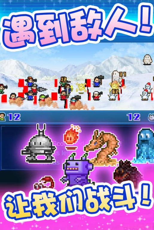 这是一款像素风冒险手游,玩家在游戏内可以扮演不同的身份,寻找冒险者为自己战斗,换取更多强势的装备,还能讨伐军团,建造一个最强大的部落。