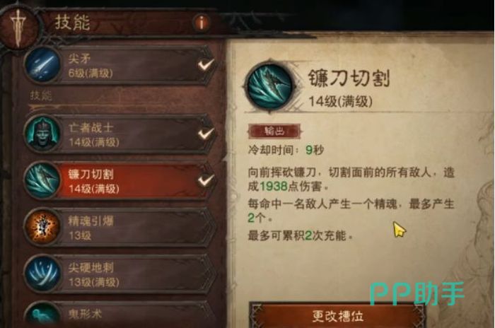 同时由于精魂引爆是一个0cd的技能,实战的时候在面对精英怪物加小怪的组合,我们炸死小怪之后,还可以继续使用这个技能,利用小怪死亡之后的尸体,对残血的精英怪物进行收割。由于镰刀技能可以存2次释放次数,在秘境里面的刷图效率极高。