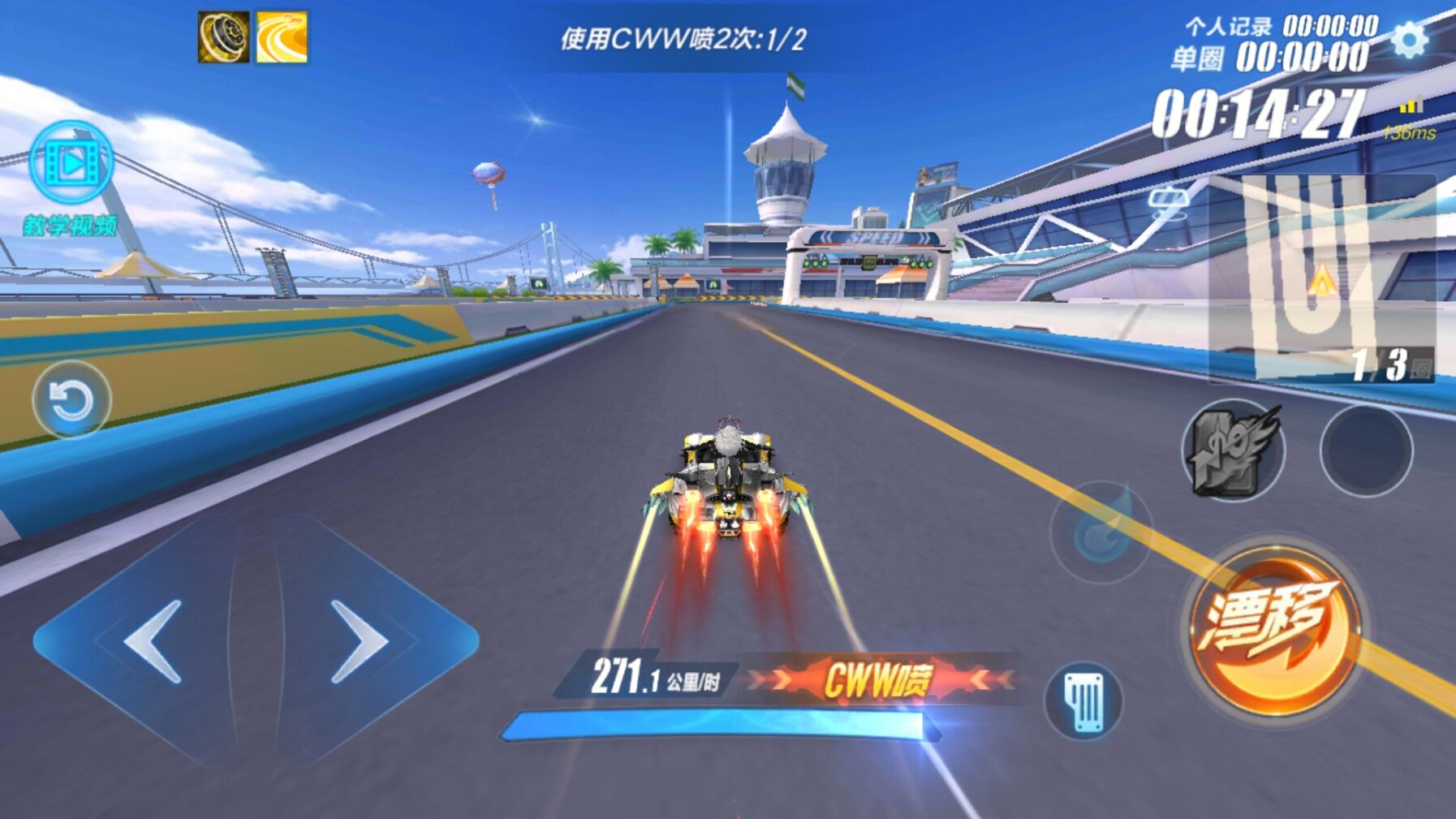 提示:因为cww喷是属于将赛车速度提升到最大的一个操作技巧,所以在使用cww喷后会有非常高的速度,这时的赛车不容易控制,所以玩家要妥善使用cww喷才可以防止赛车“停车”。