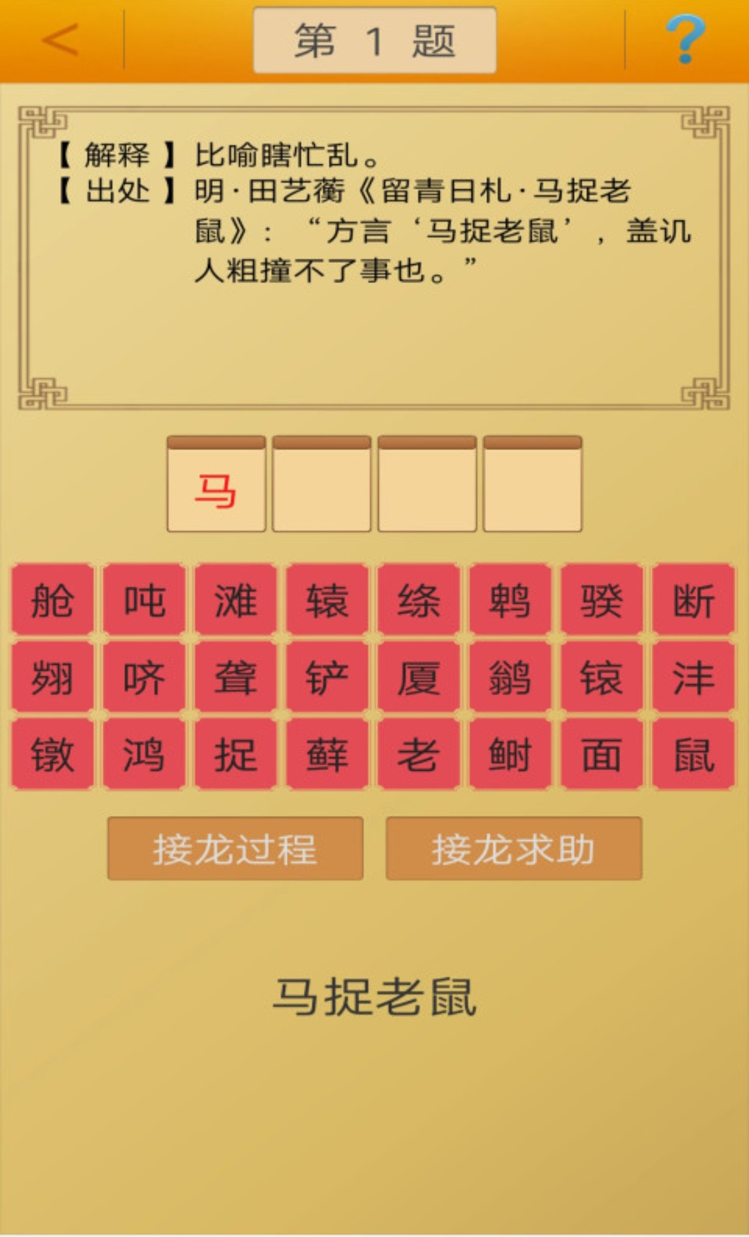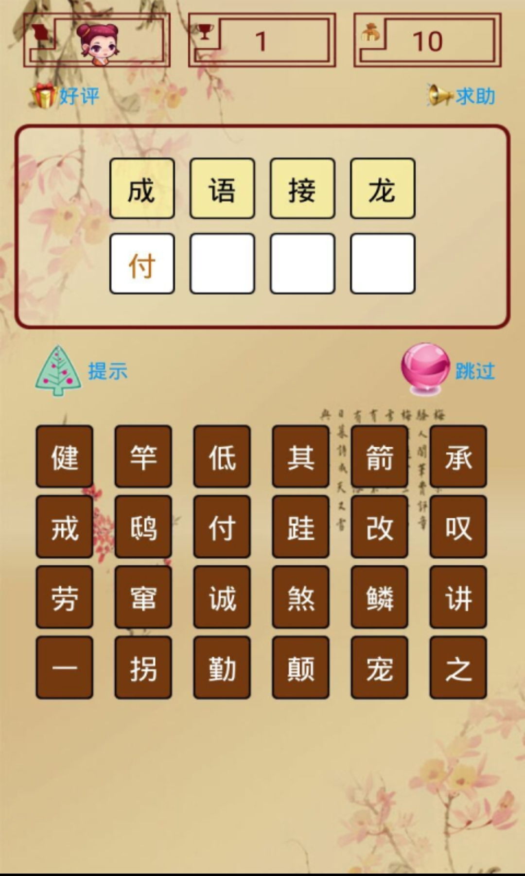 成语接龙单机游戏是一款学习成语知识的好助手,成语接龙游戏的历史悠久,而且传播范围广,玩者不分年龄大小,成语接龙游戏的玩法多样,还可以让人多动脑,是非常不错的游戏,如果有感兴趣的网友,可以下载看看呦!
