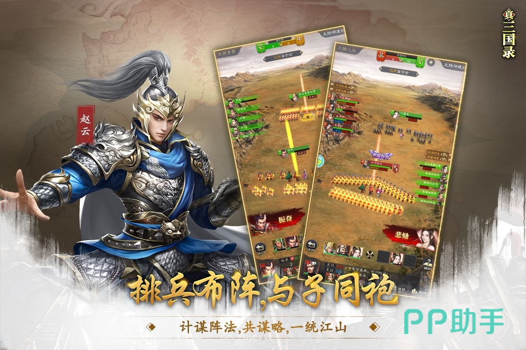 一个以三国历史为背景题材的游戏,还原了冷兵器时代的真实现状,在战斗的同时要通过招募兵种来扩大自己的团队,合理调配每位名将,让每一场战斗都充满较量。